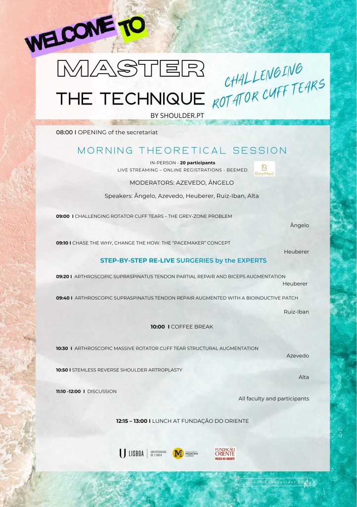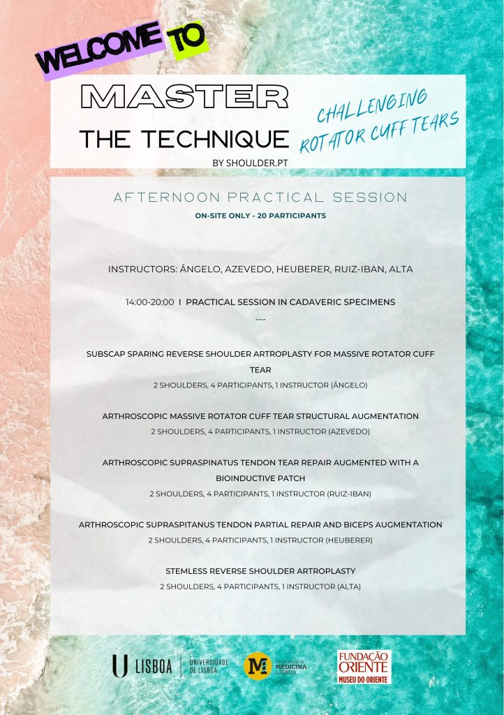 4th edition of Master the Technique BY SHOULDER.PT – CHALLENGING ROTATOR CUFF TEARS will take place on Saturday, September 19, 2026, in Lisbon, Portugal.